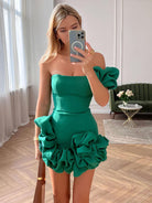 هذه الفستان القصير غير المتناظر يقدم قصّة عصرية وأنثوية. تصميمه الأنيق يتناسب مع مناسبات متنوعة. مصمم لدمج الأناقة والراحة، يبرز قوامك.