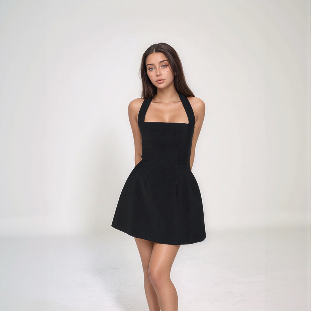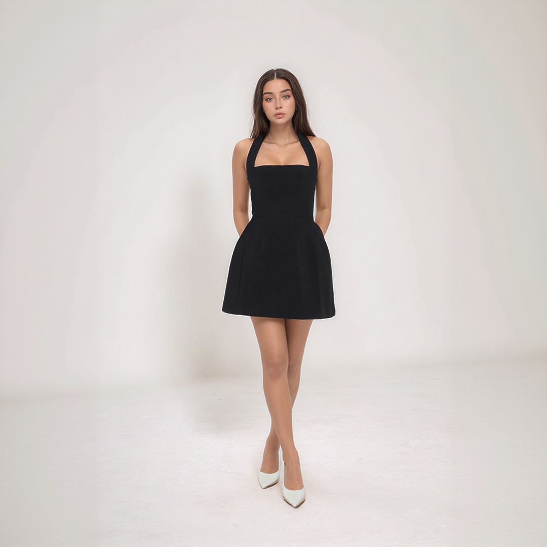 Sandra | Mini Sommerkjole – Halterneck og Flydende Volume