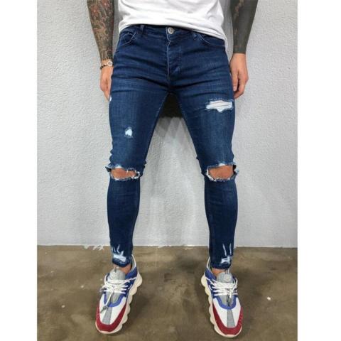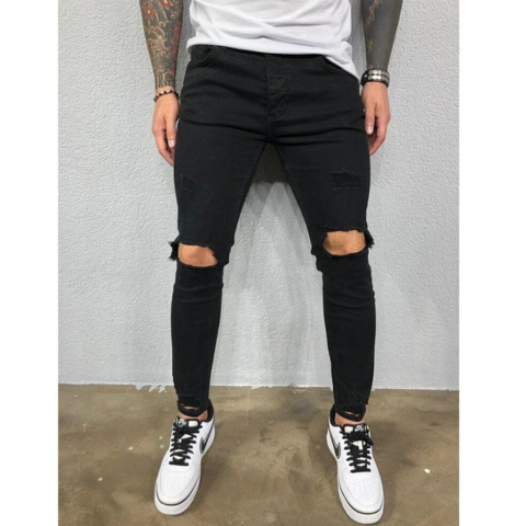 Disse revnede bukser har en moderne og tætsiddende pasform. Fås i blå og sort, de tilpasser sig nemt til alle dine outfits. Perfekt til et afslappet og trendy look.