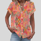 Diese elegante Bluse hat ein lebhaftes, bohemian-inspiriertes Muster. Ihr lockerer Schnitt und der V-Ausschnitt bieten optimalen Komfort. Perfekt für verschiedene Anlässe, lässt sie sich mühelos mit unterschiedlichen Hosen kombinieren.