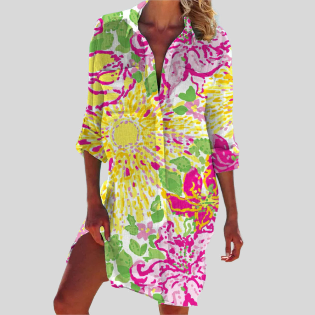 Olivia | Knopfkleid für den Sommer mit langen Ärmeln