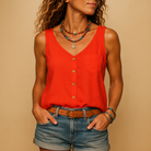 Dieses ärmellose Top mit V-Ausschnitt bietet eine lockere und bequeme Passform. In mehreren Farben erhältlich, passt es zu all Ihren Outfits. Ideal für heiße Tage, vereint es Stil und Komfort.