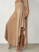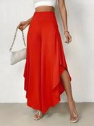 Αυτή η παντελόνα ξεχωρίζει για την ρευστή και ασύμμετρη γραμμή της που προσθέτει μια πινελιά χαρακτήρα στην εμφάνισή σας. Η ψηλή μέση τονίζει τη σιλουέτα ενώ το ελαφρύ ύφασμα προσφέρει αίσθηση άνεσης καθ' όλη τη διάρκεια της ημέρας. Ιδανική για μια χαλαρή αλλά κομψή εμφάνιση, στην πόλη ή στις διακοπές.