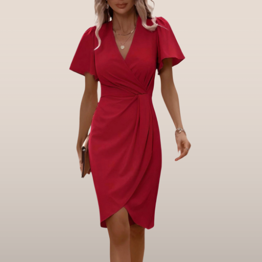 Tässä kietaisumekossa on imarteleva V-pääntie ja ilmavat perhoshihat. Sen laskostettu vyötärö ja ristiin menevä hame korostavat siluettia elegantisti. Täydellinen illallisille, juhliin tai iltaan kaupungissa.