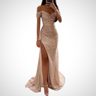 • Olkaimeton muotoilu, joka korostaa hartioita ja dekoltee.