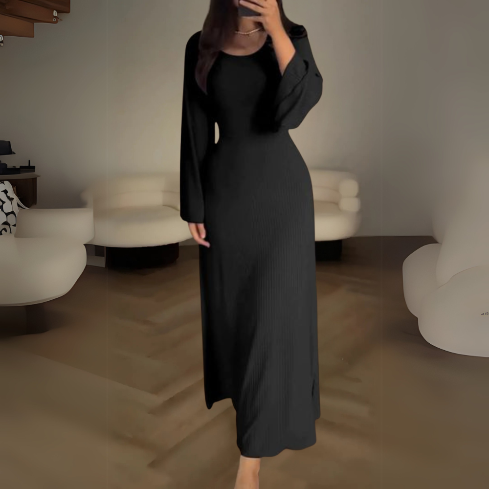 לונה | שמלה ארוכה אלגנטית – שרוולים ארוכים וגזרה מעודנת