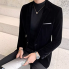 Este blazer slim para hombre combina modernidad y seguridad. Su corte ajustado resalta la silueta mientras ofrece una apariencia elegante, perfecta para grandes ocasiones o para un estilo urbano dominado. Llevado con un cuello de tortuga o una camisa, afirma una presencia confiada y un gusto seguro por la sofisticación.