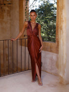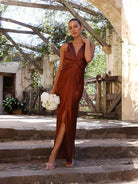 Ez a hasított estélyi ruha kiemeli az alakot elegáns hasítékával és folyékony szabásával. Nagy alkalmakra készült, ötvözi a kifinomult stílust és a mozgás szabadságát. Időtlen dizájnja minden körülmények között elegáns megjelenést biztosít.
