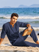 Ez a férfi szett ötvözi a stílust és a kényelmet. Egy nadrágból és egy ingből áll, ideális napos napokra.