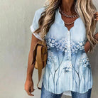 この洗練されたブラウスは、繊細な花と微妙にデザインされたVネックで魅了します。流れるような軽やかなカットは、一日中自然な快適さを提供し、あなたの装いにロマンチックなタッチを加えます。
