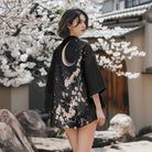 クレモンス | ブラック桜の花柄の女性用着物ジャケット