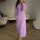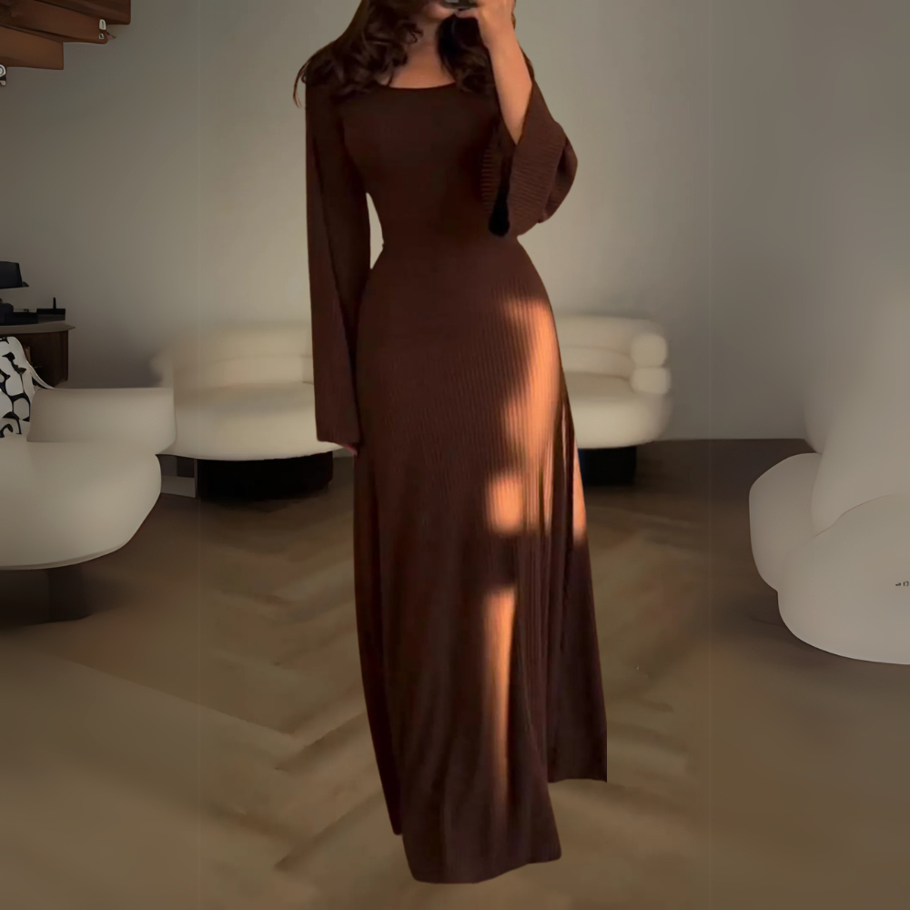 Denne lange kjolen med lange ermer gir en feminin og flatterende silhuett. Den er tilgjengelig i flere farger og passer til alle anledninger. Dens tidløse design garanterer en uanstrengt eleganse.