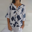 Jeanne | Elegante Bloes met Bloemenpatroon – Centrale Knopen en Korte Mouwen