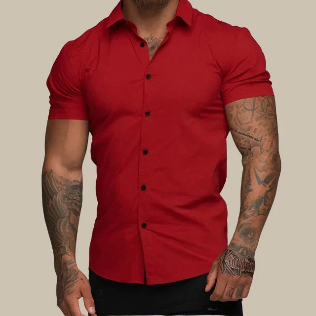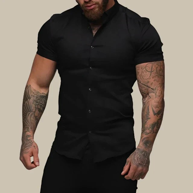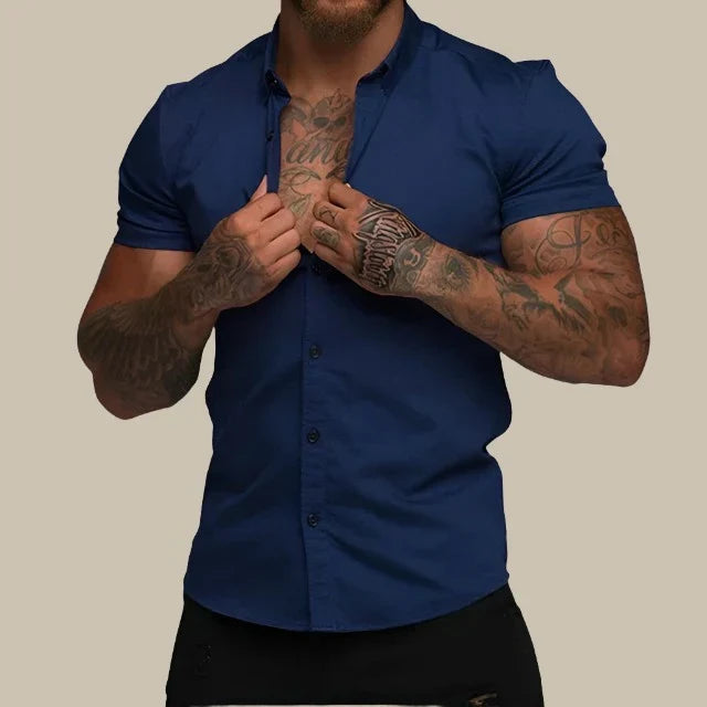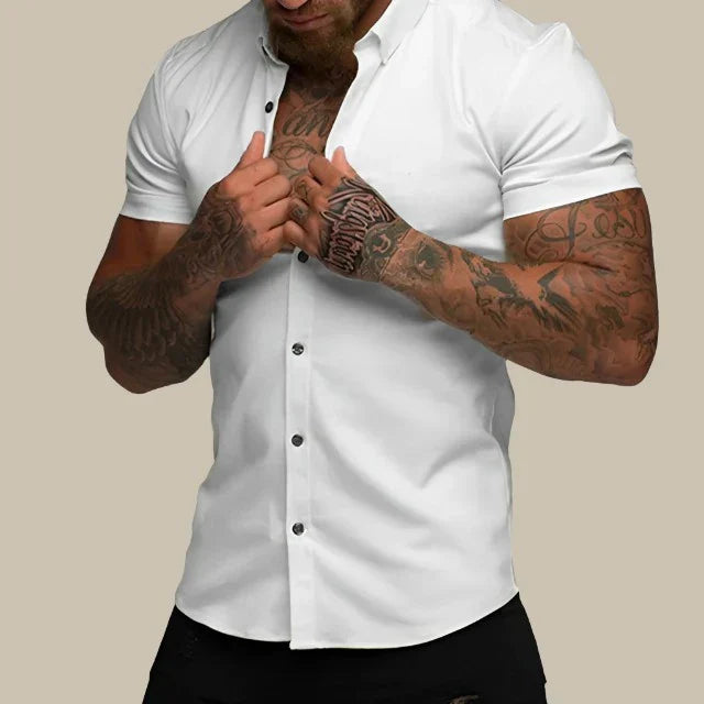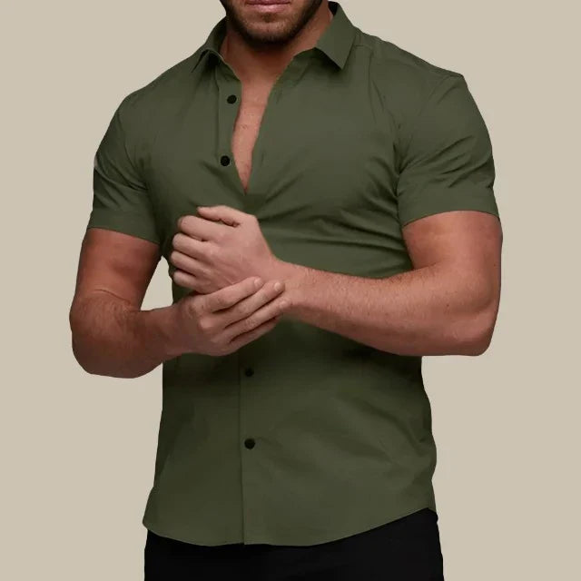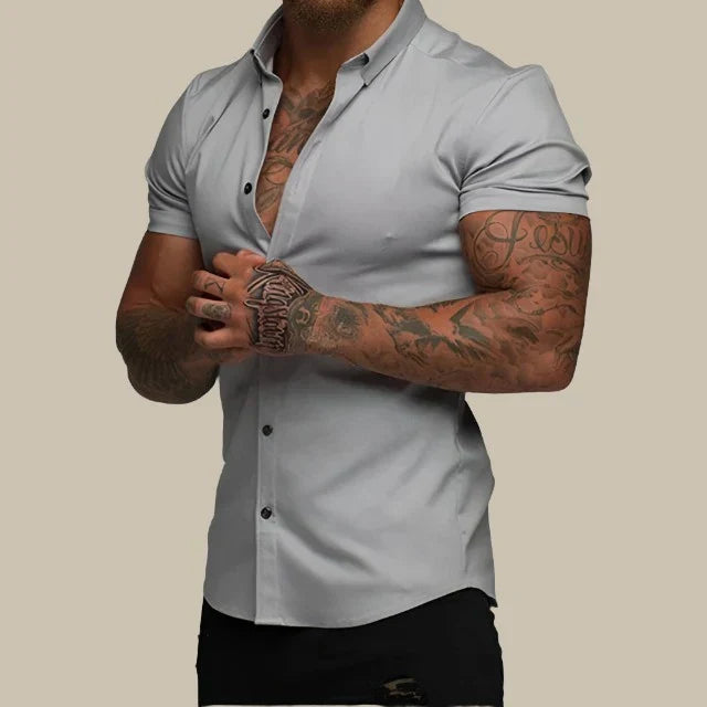 Jean | Cămașă Stretch Ajustată cu Mâneci Scurte