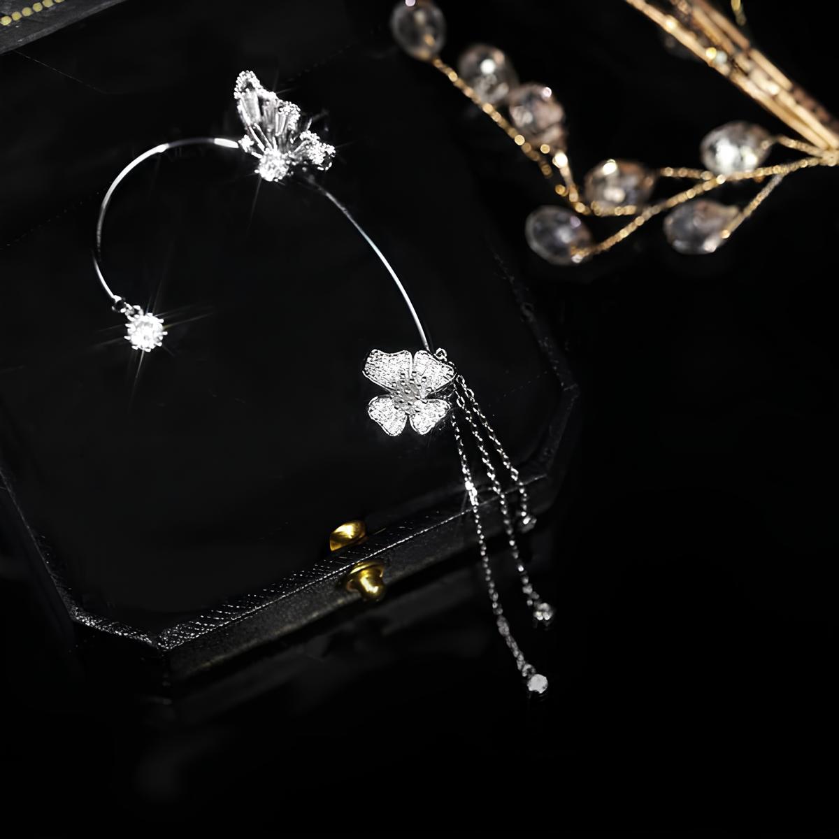 Alexandra | Cercei cu Floare și Fluture Strălucitor