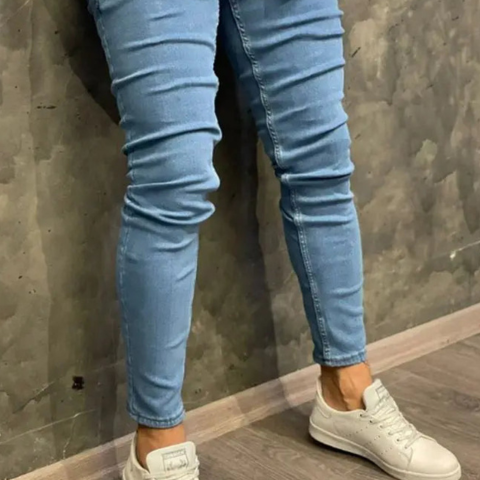 Această pereche de pantaloni din denim ajustați oferă o croială aproape de corp care subliniază silueta. Conceput pentru a îmbina eleganța și confortul, se potrivește atât pentru look-uri casual, cât și elegante. Disponibil în mai multe culori, se adaptează ușor la toate ținutele tale de zi cu zi.