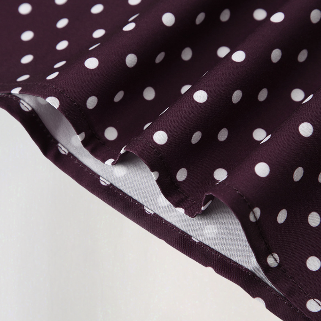 Beatrice | Rochie Scurtă Cu Puncte – Model Ciocolată Pentru Un Stil Vintage Chic