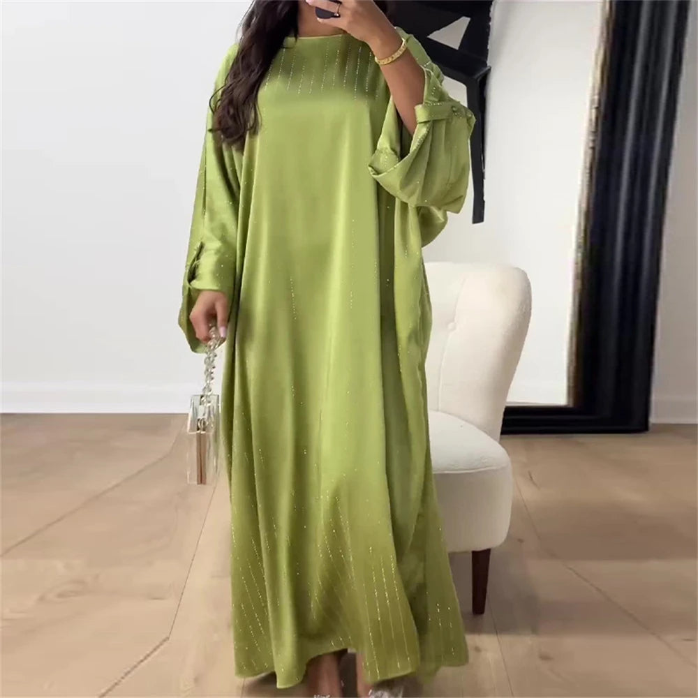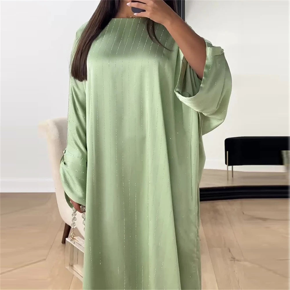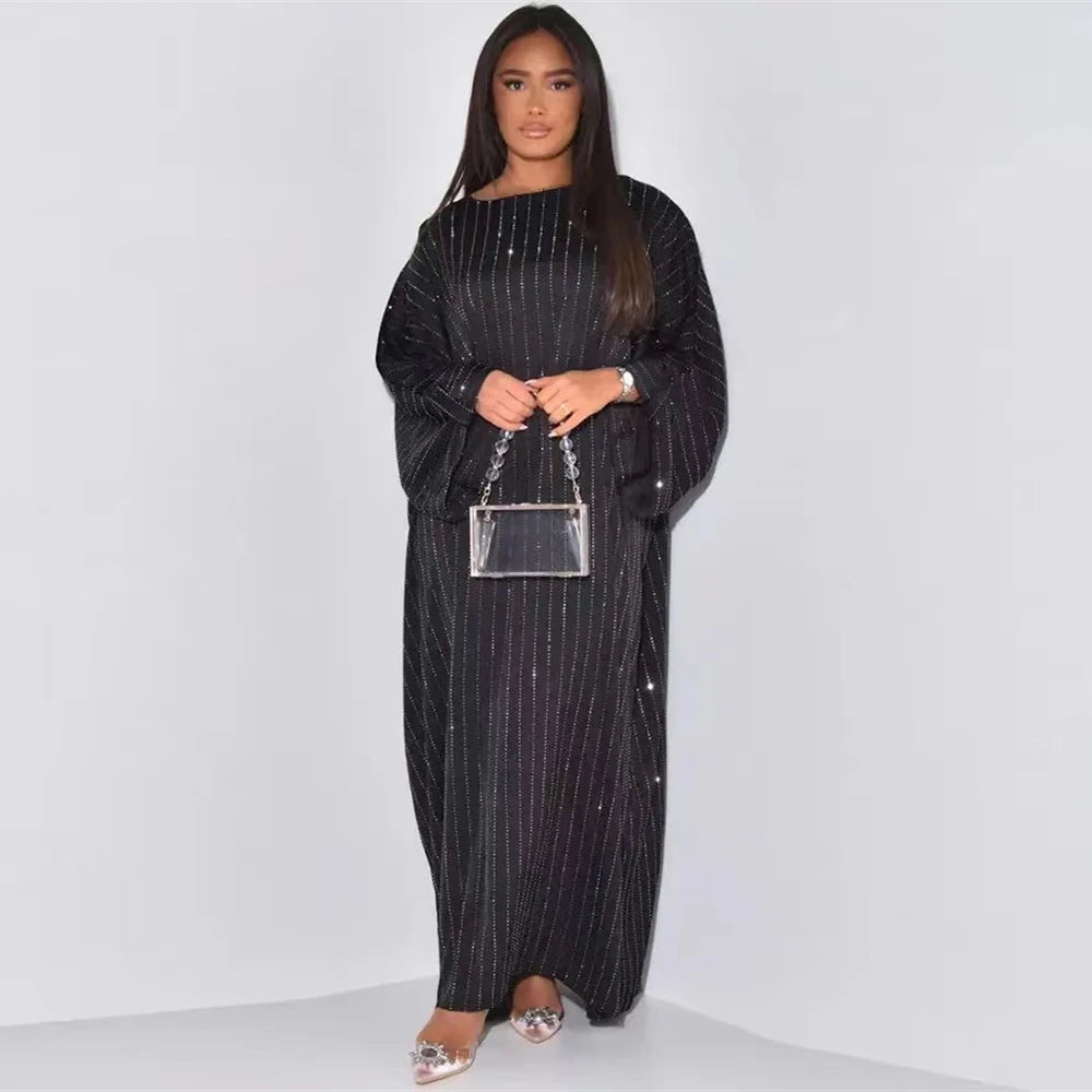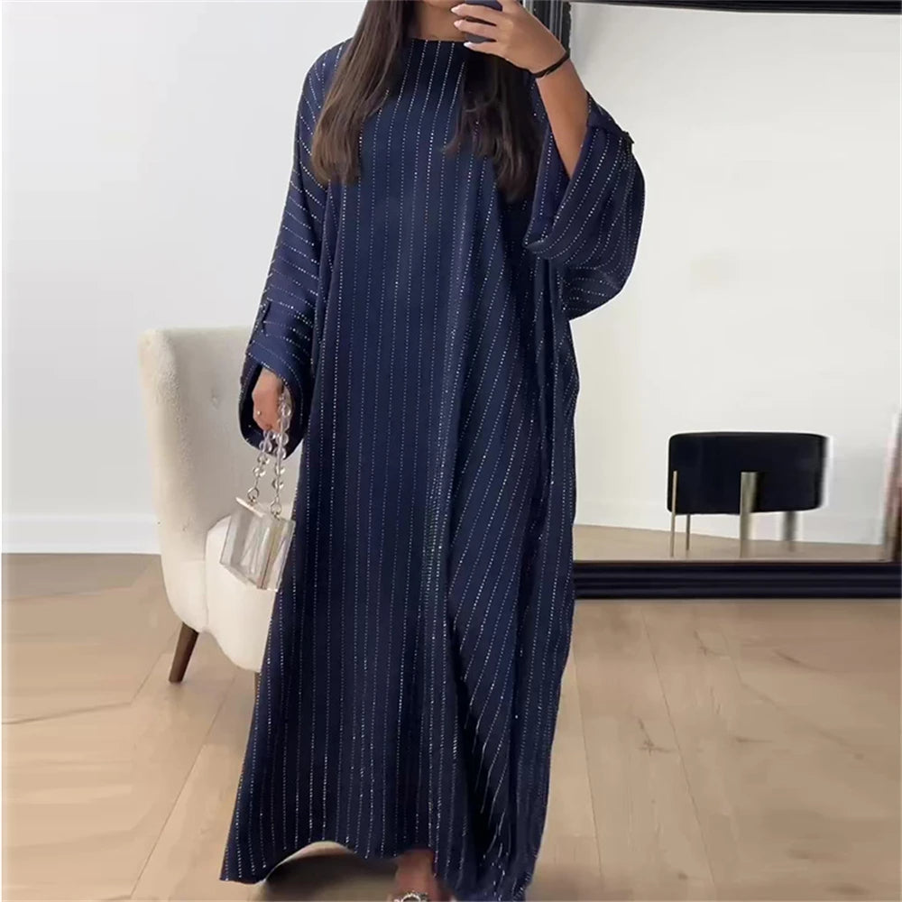 Denna kvällsabaya kombinerar en flytande passform med en elegant randig design. Dess rymliga silhuett garanterar absolut komfort, medan de subtila detaljerna diskret förhöjer din stil.